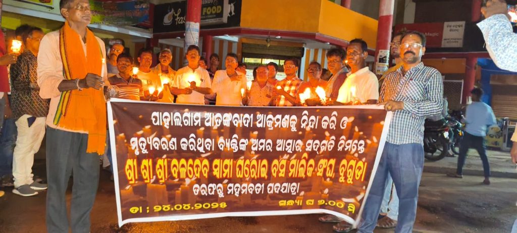 ପହେଲଗାଁ ଠାରେ ଆତଙ୍କବାଦୀ ଆକ୍ରମଣ ଘଟଣା ପ୍ରତିବାଦରେ ମହମବତୀ ଶୋଭାଯାତ୍ରା