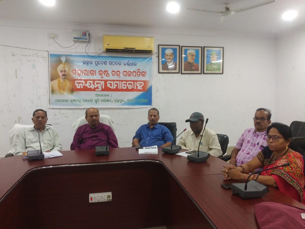 ସଭାପତିତ୍ୱରେ ଅନୁଷ୍ଠିତ ଏଇ ଜୟନ୍ତୀ ସମାରୋହ ରୋ ବ୍ରହ୍ମପୁର ବିଶ୍ବବିଦ୍ୟାଳୟର ପୂର୍ବତନ କୂଳପତି ତଥା ରଜନୀତି ସମୀକ୍ଷକ ଜୟନ୍ତ କୁମାର ମହାପାତ୍ର ମୁଖ୍ୟ ଅତିଥି ରୂପେ ଯୋଗଦେଇ କୃଷ୍ଣଚନ୍ଦ୍ର ଚନ୍ଦ୍ର ଗଜପତିଙ୍କ ସ୍ୱତନ୍ତ୍ର ଓଡ଼ିଶା ଗଠନ ଓ ଓଡିଆ ଭାଷା ସୁରକ୍ଷାରେ ଅବଦାନ ବିଷୟ ଉପରେ ବକ୍ତବ୍ୟ ରଖିଥିଲେ। ସ୍ମୃତି ପରିଷଦର ସଭାପତି ତଥା ସଂସ୍କୃତି ଗବେଷକ ଡଃ ବାୟାମନୁ ଚର୍ଚ୍ଚିଙ୍କ ଅଧ୍ୟକ୍ଷତାରେ ପରିଚାଳିତ ଏଇ ଉତ୍ସବରେ ମୁଖ୍ଯ ବକ୍ତା ରୂପେ ବ୍ରହ୍ମପୁର ବିଶ୍ୱବିଦ୍ୟାଳୟର ଅବସରପ୍ରାପ୍ତ ରାଜନୀତି ବିଜ୍ଞାନର ପ୍ରଫେସର ସୁସାହିତ୍ୟିକ ଡଃ ବିଷ୍ଣୁ ଚରଣ ଚୌଧୁରୀ ଯୋଗଦେଇ ଅନ୍ୟ ରାଜ୍ୟରେ ଲୋକ ମାନଙ୍କ ଭାଷା ପ୍ରୀତି ଏବଂ ଓଡ଼ିଶାବାସୀଙ୍କ ଭାଷା ପ୍ରୀତି ଉପରେ ସମାଲୋଚନା କରିଥିଲେ।ଖଣ୍ଡ ବିଖଣ୍ଡିତ ଓଡିଶାର ଏକତ୍ରି କରଣରେ ମହାରାଜାଙ୍କ ଭୂମିକା ଉପରେ ଆଲୋକପାତ କରିଥିଲେ।ନେତୃତ୍ୱ ଅଭାବ ସମୟରେ ମହାରାଜାଙ୍କ ସ୍ବାଭିମାନ ଭରା ନେତୃତ୍ବ ଯୋଗୁଁ ଭାଷା ଭିତ୍ତିରେ ଓଡିଶା ସ୍ବତନ୍ତ୍ର ପ୍ରଦେଶ ରୂପେ ଘୋଷିତ ହେଲା।ତାଙ୍କର ଉତ୍ସର୍ଗୀକୃତ ଜୀବନ, ମୂଲ୍ଯ ଭିତ୍ତିକ ରାଜନୀତି, ନାରୀ ଶିକ୍ଷା ଏବଂ ସଂସ୍କୃତ ଶିକ୍ଷାର ପ୍ରସାର ଉପରେ ତାଙ୍କର ଅବଦାନ ସ୍ମରଣ କରିଥିଲେ।