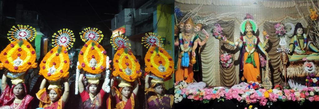 ବୁଗୁଡ଼ା,(ସୋରେନ କୁମାର ପ୍ରଧାନ): ବୁଗୁଡ଼ା ପଞ୍ଚ ଠାକୁରାଣୀ ଯାତ୍ରା ଆଜି ଏକାଦଶ ଦିବସରେ ପହଞ୍ଚିଥିବା ବେଳେ ପାରମ୍ପରିକ ରୀତିନୀତି ପ୍ରକାରେ ମା’ଙ୍କ ପୂଜାର୍ଚ୍ଚନା ଏବଂ ଘଟ ସ୍ରସାଧକ ମିଟୁ ସାହୁଙ୍କ ଦ୍ବାରା ସୁମନ ସଜ୍ଜିତ ମା’ଙ୍କ ଘଟ ପରିକ୍ରମା କାର୍ଯ୍ୟକ୍ରମ ମହା ଆଡମ୍ବରରେ ଅନୁଷ୍ଠିତ ହୋଇଯାଇଛି । ଆଜି ପୂର୍ବାହ୍ନରେ ବଡଦାଣ୍ଡସ୍ଥିତ ଅସ୍ଥାୟୀ ପୂଜା ମଣ୍ଡପରେ ଯଥା ବିଧି ପୂର୍ବକ ପଞ୍ଚ ପୁରୋହିତ ମା’ଙ୍କ ପୂଜାର୍ଚ୍ଚନା ସମ୍ପାଦନ କରିଥିବା ବେଳେ ସଞ୍ଜୟ ପାତ୍ର ସସ୍ତ୍ରୀକ ହୋମକର୍ତ୍ତା ଭାବେ ଦାୟିତ୍ବ ନିର୍ବାହ କରିଥିଲେ । ଏଥି ସହ ସନ୍ଧ୍ୟାରେ ୧୦୮ ଆଳତି ପରେ ଘଟ ପରିକ୍ରମାର ଶୁଭାରମ୍ଭ ହୋଇଥିଲା । ପଞ୍ଚ ମାନସିକଧାରୀ ମହିଳା ରଶ୍ମିତା ସାହୁ, ବୈଜୟନ୍ତୀମାଳା ପ୍ରଧାନ, ସସ୍ମିତା ଆପଟ, ଶିବାନୀ ପଟ୍ଟନାୟକ, ପିନାକିନୀ ସାମଲ ପ୍ରମୁଖ ପଞ୍ଚ ଠାକୁରାଣୀଙ୍କ ଘଟ ଧାରଣ କରି ଶ୍ରଦ୍ଧାଳୁଙ୍କ ଗହଣରେ ଯାଦବ ସାହି, ରେଞ୍ଜ ଅଫିସ୍, ପୋଲିସ କଲୋନୀ, ସବରେଜିଷ୍ଟର ଅଫିସ କଲୋନୀ, ମହାପାତ୍ର ସାହି, ଅନ୍ଧାରିଆ ସାହି, ନୂଆଁ ସାହି, ଧୋବା ସାହି, ହରିଜନ ସାହି, କୁମ୍ଭାର ସାହି, ପଥୁରିଆ ସାହି, ବଳଦେବ ମନ୍ଦିର ପଥ ଆଦି ପରିକ୍ରମା କରି ସ୍ବଆସ୍ଥାନକୁ ଫେରିଥିଲେ । ମା’ଙ୍କ ଭ୍ରମଣି ଯାତ୍ରା କାଳରେ ଘଣ୍ଟତାଳ, ଢୋଲ ବାଦ୍ୟରେ ପରିବେଶ ପ୍ରକମ୍ପିତ ହୋଇ ଉଠିଥିଲା। ଅନ୍ୟପକ୍ଷରେ ଆଜି ପୋଲସରା ରୋଡ ସ୍ଥିତ “ବ୍ରହ୍ମା-ବିଷ୍ଣୁ-ମହେଶ୍ଵର” ମେଢ, ନୂଆସାହିର “କଳକୀ ଅବତାର” ମେଢ ଓ ପଥୁରିଆ ସାହିର “ରାମ ଅଭିଷେକ” ମେଢ ଆଦି ଲୋକାର୍ପିତ ହୋଇ ଜନତାଙ୍କ ଭିଡ ସାଉଁଟି ଥିଲା। ଯାତ୍ରା ଗହଳିକୁ ନିୟନ୍ତ୍ରଣ ପାଇଁ ବିଭିନ୍ନ ଛକରେ ପୋଲିସ ନିୟୋଜିତ ଥିଲେ ।