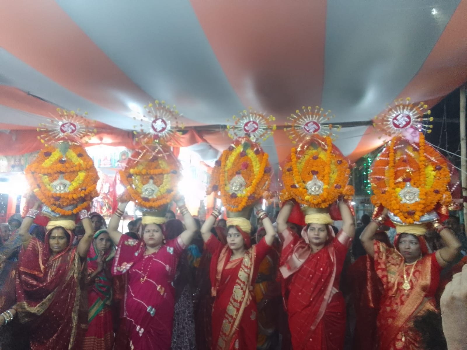 ବୁଗୁଡ଼ା,(ସୋରେନ କୁମାର ପ୍ରଧାନ):- ବୁଗୁଡ଼ା ପଞ୍ଚ ଠାକୁରାଣୀ ଯାତ୍ରା ଆଜି ଦ୍ବାଦଶ ଦିବସରେ ପହଞ୍ଚିଥିବା ବେଳେ ସ୍ଥାନୀୟ ଚ୍ଯାମ୍ବର ଅଫ୍ କମର୍ସ ପକ୍ଷରୁ ପଞ୍ଚ ଠାକୁରାଣୀଙ୍କ ଘଟ ପରିକ୍ରମା ସହ ଆଜିର ଯାତ୍ରା କାର୍ଯ୍ୟକ୍ରମ ମହା ଆଡମ୍ବରରେ ଅନୁଷ୍ଠିତ ହୋଇଯାଇଛି । ଆଜି ପୂର୍ବାହ୍ନରେ ବଡଦାଣ୍ଡସ୍ଥିତ ଅସ୍ଥାୟୀ ପୂଜା ମଣ୍ଡପରେ ଯଥା ବିଧି ପୂର୍ବକ ପଞ୍ଚ ପୁରୋହିତ ମା’ଙ୍କ ପୂଜାର୍ଚ୍ଚନା ସମ୍ପାଦନ କରିଥିବା ବେଳେ ସନ୍ଧ୍ୟାରେ ୧୦୮ ଆଳତି ପରେ ଘଟ ପରିକ୍ରମାର ଶୁଭାରମ୍ଭ ହୋଇଥିଲା । ପଞ୍ଚ ମାନସିକଧାରୀ ମହିଳା ଏମ୍.ଲକ୍ଷ୍ମୀ ପାତ୍ର, ଟି.ସସ୍ମିତା ସାମନ୍ତରା, ଏସ୍.ମୋନାଲିସା, ଡି.ରେଶମା ପାତ୍ର, ସୁନିତା ପାତ୍ର ପ୍ରମୁଖ ଘଟ ଧାରଣ ପୂର୍ବକ ବଳଦେବ ମନ୍ଦିର, ପୋଲିସ ଥାନା ରୋଡ, ହାଇସ୍କୁଲ ଛକ, ନୂଆଁ ବସଷ୍ଟାଣ୍ଡ, ମଦନ ମୋହନ ଛକ, ବୁଦ୍ଧଖୋଲ ରୋଡ ଛକ, ପୋଲସରା ରୋଡ ଆଦି ପରିକ୍ରମା କରି ସ୍ବଆସ୍ଥାନକୁ ଫେରିଥିଲେ ।