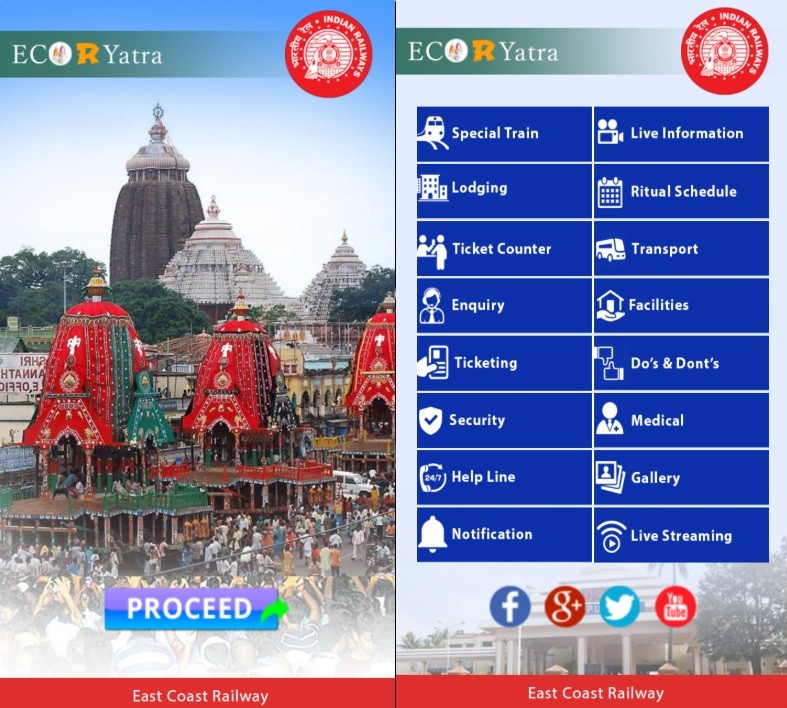 ପୁରୀରେ ବିଶ୍ୱପ୍ରସିଦ୍ଧ ରଥଯାତ୍ରା 2025 ରେ ଯୋଗଦାନ କରୁଥିବା ଲକ୍ଷ ଲକ୍ଷ ତୀର୍ଥଯାତ୍ରୀଙ୍କୁ ପ୍ରକୃତ-ସମୟ, ନିର୍ଭରଯୋଗ୍ୟ ଏବଂ ସୁଲଭ ରେଳ ସେବା ପ୍ରଦାନ କରିବା ଲକ୍ଷ୍ୟରେ ପୂର୍ବତଟ ରେଳପଥ ‘ECoR Yatra _ ଇକୋର ଯାତ୍ରା’ ନାମକ ଏକ ଉତ୍ସର୍ଗୀକୃତ ମୋବାଇଲ୍ ଆପ୍ ଲଞ୍ଚ କରିଛି | ଏହି ଆଣ୍ଡ୍ରଏଡ୍-ଆଧାରିତ ମୋବାଇଲ୍ ଆପ୍ ବର୍ତ୍ତମାନ ଗୁଗୁଲ୍ ପ୍ଲେ ଷ୍ଟୋରରେ ଉପଲବ୍ଧ ଏବଂ ମହୋତ୍ସବ ସମୟରେ ସମସ୍ତ ରେଳ-ସମ୍ବନ୍ଧୀୟ ସେବା ଏବଂ ଯାତ୍ରୀ ସୁବିଧା ପାଇଁ ଏକ ବ୍ୟାପକ ଡିଜିଟାଲ୍ ମାର୍ଗଦର୍ଶିକା ପ୍ରଦାନ କରିବ | ଏହି ଆପ୍ ସ୍ୱତନ୍ତ୍ର ଭାବରେ ରଥଯାତ୍ରା 2025 ସମୟରେ ଯାତ୍ରା କରୁଥିବା ତୀର୍ଥଯାତ୍ରୀ ଏବଂ ରେଳ ବ୍ୟବହାରକାରୀଙ୍କ ପାଇଁ ବ୍ୟାପକ ଏବଂ ବାସ୍ତବ-ସମୟ ସୂଚନା ପ୍ରଦାନ କରିବା ପାଇଁ ଡିଜାଇନ୍ କରାଯାଇଛି ଆପଣଙ୍କର ଡିଜିଟାଲ୍ ରଥଯାତ୍ରା ସାଥୀ