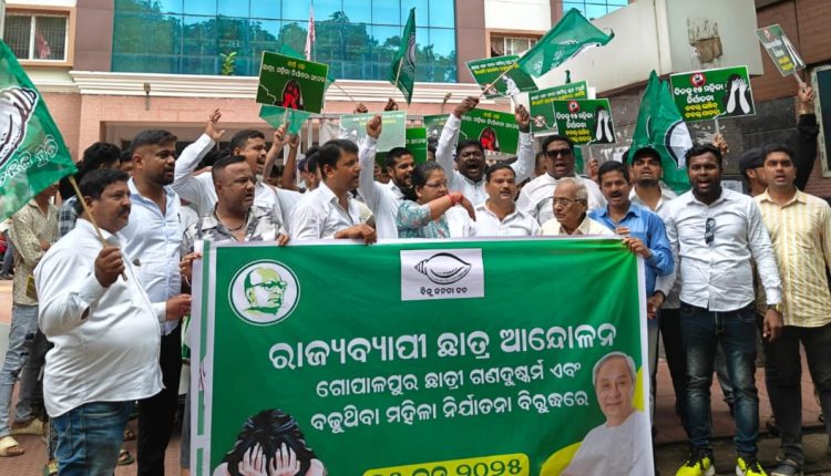 ରାଜ୍ୟରେ ଦୁଷ୍କର୍ମ ବଢ଼ିଥିବା ବିଜେଡ଼ି ଦାବି କରିଛି l ଏହାର ପ୍ରତିବାଦ ରେ ଜିଲ୍ଲାର ବିଭିନ୍ନ ମହାବିଦ୍ୟାଳୟ ଓ ବିଶ୍ବବିଦ୍ୟାଳୟ ସମ୍ମୁଖରେ ବିଜେଡ଼ି ଆନ୍ଦୋଳନ କରିଛି l ଆସନ୍ତା ଦିନରେ ଅଖ ଚକ ବନ୍ଦ ନେଇ ଡାକରା ଦିଆଯିବ ବୋଲି ବିଜେଡି ଚେତାବନୀ ଦେଇଛି l ଆଇନ ଶୃଙ୍ଖଳା ଦିଗରେ ସରକାର ଚେତନ୍ତୁ ବୋଲି ସୂଚାଇ ଦିଆଯାଇଛି l ଯୁବ,ଛାତ୍ର ଓ ବିଜେଡିର କର୍ମକର୍ତ୍ତା ଏଥିରେ ଭାଗ ନେଇଛନ୍ତି l ପ୍ରଶାନ୍ତ ପଣ୍ଡା,ଭବାନୀ ସାହୁ,ପୂର୍ବତନ ବିଧାୟକ ଆର ସି ସି ପଟ୍ଟନାୟକ, ମେୟର ସଂଘମୀତ୍ରା ଦଳାଇ, ବିବେକ ରେଡ୍ଡୀ,ମୁରଲୀ ମୋହନ,ମୁକୁନ୍ଦ ଗୌଡ଼ ସମେତ ବହୁ କର୍ମକର୍ତ୍ତା ଯୋଗ ଦେଇଥିଲେ l ବରିଷ୍ଠ ନେତା ସୁବାଷ ମହାରଣାଙ୍କୁ ସୂଚନା ନଥିବ କୁହାଯାଇଛି