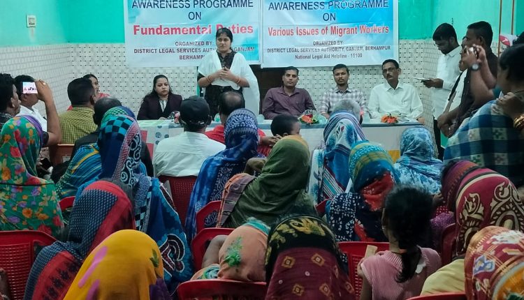 ଗଞ୍ଜାମ ଜିଲ୍ଲା ଆଇନସେବା ପ୍ରାଧିକରଣ,ବ୍ରହ୍ମପୁର ଦ୍ୱାରା ବୁଧବାର ( ୨୫. ୬. ୨୫ ) ପୁରୁଣା ବ୍ରହ୍ମପୁର ଅନ୍ତର୍ଗତ ୱାର୍ଡ ନଂ ୧୧, ବାଉରୀ ସାହି କମ୍ୟୁନିଟି ହଲ ପରିସରରେ ଜିଲ୍ଲା ଓ ଦୌରା ଜଜ ତଥା ଜିଲ୍ଲା ଆଇନ ସେବା ପ୍ରାଧିକରଣ ଅଧ୍ୟକ୍ଷା ଡ଼ା ଭାଗ୍ୟଲକ୍ଷ୍ମୀ ରଥଙ୍କ ନିର୍ଦ୍ଦେଶକ୍ରମେ ଜିଲ୍ଲା ଆଇନ ସେବା ପ୍ରାଧିକରଣ ସଚିବ ଦେବଶ୍ରୀ ସାହୁଙ୍କ ପରିଚାଳନାରେ ‘ମୌଳିକ କର୍ତ୍ତବ୍ୟ’ ଏବଂ ‘ପ୍ରବାସୀ ଶ୍ରମିକଙ୍କ ବିଭିନ୍ନ ସମସ୍ୟା ‘ ବିଷୟରେ ଏକ ସଚେତନତା କାର୍ଯ୍ୟକ୍ରମ ଅନୁଷ୍ଠିତ ହୋଇଥିଲା l ଏହି କାର୍ଯ୍ୟକ୍ରମରେ ଏସିଜିଏମ ବ୍ରହ୍ମପୁର ଶ୍ରୀ ମୁସାରାତ୍ତ ଜ଼ହିମ, ଜିଲ୍ଲା ଆଇନ ସେବା ପ୍ରାଧିକରଣ ସଦସ୍ୟ ଶ୍ରୀ ଟି.କେ ରେଡ୍ଡୀ, ସଦସ୍ୟା ଡ଼ଃ ମିନାକ୍ଷୀ ଦେବୀ, ଦୁଇ ଅତିରିକ୍ତ ଜିଲ୍ଲା ଶ୍ରମ ଅଧିକାରୀ, ପେନେଲ ଓକିଲ ସଂଗ୍ରାମ ପ୍ରଧାନ ଙ୍କ ସମେତ ୧୧ ନଂ ୱାର୍ଡବାସିନ୍ଦା ଉପସ୍ଥିତ ରହିଥିଲେ