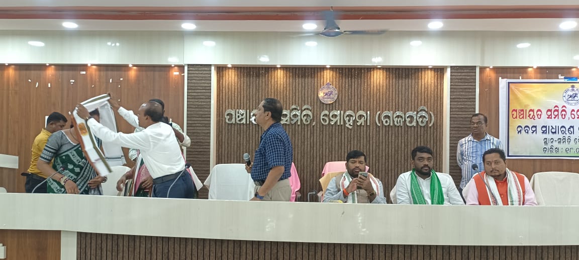 ଶୁକ୍ରବାର ମୋହନା ପଞ୍ଚାୟତ ସମିତି ବୈଠକ ଅନୁଷ୍ଠିତ ହୋଇଯାଇଛି l ବ୍ଲକ ଅଧ୍ୟକ୍ଷ ରଞ୍ଜିବ ଶବର ଙ୍କ ଅଧ୍ୟକ୍ଷତାରେ ଅନୁଷ୍ଠିତ ବୈଠକରେ ବିଭିନ୍ନ ଉନ୍ନୟନ ମୂଳକ କାର୍ଯ୍ୟ ଉପରେ ଆଲୋଚନା କରାଯାଇଛି l ମୋହନା ବିଧାୟକ ଦାଶରଥି ଗମାଙ୍ଗ ମୁଖ୍ୟ ଅତିଥି ଭାବେ ଯୋଗଦେଇ ବିଭିନ୍ନ ଯୋଜନା ସମ୍ପର୍କ ରେ କହିବା ସହ ଉନୟନ କାର୍ଯ୍ୟ ପାଇଁ ସମସ୍ତଙ୍କ ସହଯୋଗ କାମନା କରିଛନ୍ତି l ଏହି ବୈଠକରେ ବିଶେଷ କରି ମୋହନାରେ ପାନୀୟ ଜଳ ସମସ୍ୟା ଉପରେ ଆଲୋଚନା ହୋଇଛି l ମେଗା ପ୍ରକଳ୍ପ କାମ ଧିମେଇ ଚାଲିଥିବା ବେଳେ ମୋହନା ଗୋଷ୍ଠୀ ସ୍ବାସ୍ଥ୍ୟ କେନ୍ଦ୍ର ରେ ବିଭିନ୍ନ ଅବ୍ୟବସ୍ଥା ଲାଗିରହିଛି l ଏସବୁର ତୁରନ୍ତ ସମାଧାନ ପାଇଁ ଦାବୀ କରିଥିଲେ ଜନ ପ୍ରତିନିଧି l ଏଥିସହ ଏହି ବୈଠକରେ ବିକଶିତ ଗାଁ ବିକଶିତ ଓଡିଶା ଅନୁଦାନ ଉପରେ ଆଲୋଚନା କରାଯାଇଛି l ଏହି ବୈଠକରେ ମୋହନା ବିଡ଼ିଓ ରାଜୀବ ଦାସ, ବ୍ଲକ ଉପାଧ୍ୟକ୍ଷl ବାଲ୍ମୀନା ଅଧିକାରୀ, ସାଂସଦ ପ୍ରତିନିଧି ଜୀତେନ୍ଦ୍ର ବେହେରା,ଏବିଡ଼ିଓ ରମାକାନ୍ତ ଚୌଧୁରୀ ଯୋଗଦେଇଥିଲେ l ବୈଠକକୁ ସହକାରୀ ନିର୍ବାହୀ ଯନ୍ତ୍ରୀ ନାରାୟଣ ପାଢ଼ୀ ଓ ଜିପିଡିଓ ଦୀପକ ପ୍ରଧାନ ପରିଚାଳନା କରିଛନ୍ତି l