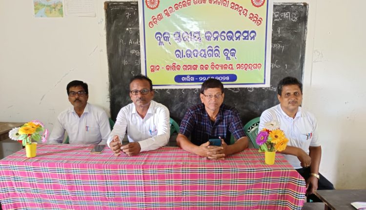 ମଙ୍ଗଳବାର ଅପରାହ୍ନ 2ଘ ସମୟରେ ଆର ଉଦୟଗିରି ବ୍ଲକର ମହେନ୍ଦ୍ରଗଡ଼ କାର୍ତ୍ତିକ ଗମାଙ୍ଗ ଉଚ୍ଚ ବିଦ୍ୟାଳୟ ଠାରେ ଓଡିଶା ସ୍କୁଲ ଓ କଲେଜ ଶିକ୍ଷକ କର୍ମଚାରୀ ସମନ୍ୱୟ ସମିତିର ଏକ ବ୍ଲକ ସ୍ତରୀୟ କାନଭେନସନ ଅନୁଷ୍ଠିତ ହୋଇଯାଇଛି | ରାଜ୍ୟ କାର୍ଯ୍ୟକାରିଣୀ ସଦସ୍ୟ ଶ୍ରୀ ଲୋକନାଥ ନାହାକ ବ୍ଲକ ସମ୍ପାଦକ ଶ୍ରୀ ସୁବାସ ଚନ୍ଦ୍ର ସାହୁ, ଶିକ୍ଷକ ଶ୍ରୀ ରାଧାକୃଷ୍ଣ ପଣ୍ଡା ଓ ଶ୍ରୀ ସିଦ୍ଧାର୍ଥ ଶଙ୍କର ଚୌଧୁରୀ ମଂଚାସୀନ ଥିଲେ | ବର୍ତ୍ତମାନ ସମୟରେ ଏହି ସରକାରଙ୍କ ଏକ ବର୍ଷ ପୂର୍ତ୍ତି ହୋଇଯାଇଥିଲେ ମଧ୍ୟ ଶିକ୍ଷକ ମାନଙ୍କର କୌଣସି ସମସ୍ୟା ପୂରଣ ହୋଇ ପାରିନାହିଁ | 194 ବିଦ୍ୟାଳୟ ପାଇଁ ଅନୁଦାନ ବ୍ୟବସ୍ଥା, ପେନସନ ବ୍ୟବସ୍ଥା ଭଳି ମୌଳିକ ସମସ୍ୟାର ସମାଧାନ ପାଇଁ ସରକାରଙ୍କ ବୈମାତୃକ ମନୋଭାବକୁ ନିନ୍ଦା କରାଯାଇଥିଲା | ବ୍ଲକ ସ୍ତରୀୟ କାନଭେନସନ ପରେ ଆଗାମୀ 2 ତାରିଖରେ ଜିଲ୍ଲା ସ୍ତରୀୟ କାନଭେନସନ କୁଜାସିଂ ହାଇସ୍କୁଲରେ କରିବା ପାଇଁ ଘୋଷଣା କରାଯାଇଥିଲା | ଅଗଷ୍ଟ 9 କ୍ରାନ୍ତି ଦିବସ ଅବସରରେ ଜିଲ୍ଲା ଶିକ୍ଷାଧିକାରୀଙ୍କୁ ଦାବିପତ୍ର ଦେବା ପାଇଁ ଓ ଅଗଷ୍ଟ 16 ତାରିଖ ଦାବୀ ଦିବସ ଅବସରରେ ସମଗ୍ର ଓଡ଼ିଶାର ଶିକ୍ଷକ ଓ କର୍ମଚାରୀ ମାନଙ୍କୁ ନେଇ ପି ଏମ ଜି ଛକରେ ଦୁର୍ବାର ଆନ୍ଦୋଳନ କରିବା ପାଇଁ ମଂଚାସୀନ ଅତିଥି ମତ ସାବ୍ୟସ୍ତ କରିଥିଲେ | ବିନା ଆନ୍ଦୋଳନରେ କୌଣସି ସମାଧାନ ହୋଇ ପାରିବ ନାହିଁ ବୋଲି ଶିକ୍ଷକବୃନ୍ଦ ମତ ଦେଇଥିଲେ ତେଣୁ ବ୍ଲକ ସମ୍ପାଦକ ଶ୍ରୀ ସୁବାସ ଚନ୍ଦ୍ର ସାହୁ ଆଗାମୀ ଆନ୍ଦୋଳନରେ ଗଜପତି ଜିଲାରୁ ବହୁ ସଂଖ୍ୟାରେ ଯୋଗ ଦେବାପାଇଁ ପରାମର୍ଶ ଦେଇଥିଲେ ଏହି କାର୍ଯ୍ୟକ୍ରମକୁ ବ୍ଲକ ସମ୍ପାଦକ ଶ୍ରୀ ସାହୁ ପରିଚାଳନା କରିଥିଲେ ଓ ପ୍ରଧାନ ଶିକ୍ଷକ ଶ୍ରୀ ଲୋକନାଥ ନାହାକ ଧନ୍ୟବାଦ ଅର୍ପଣ କରିଥିଲେ |