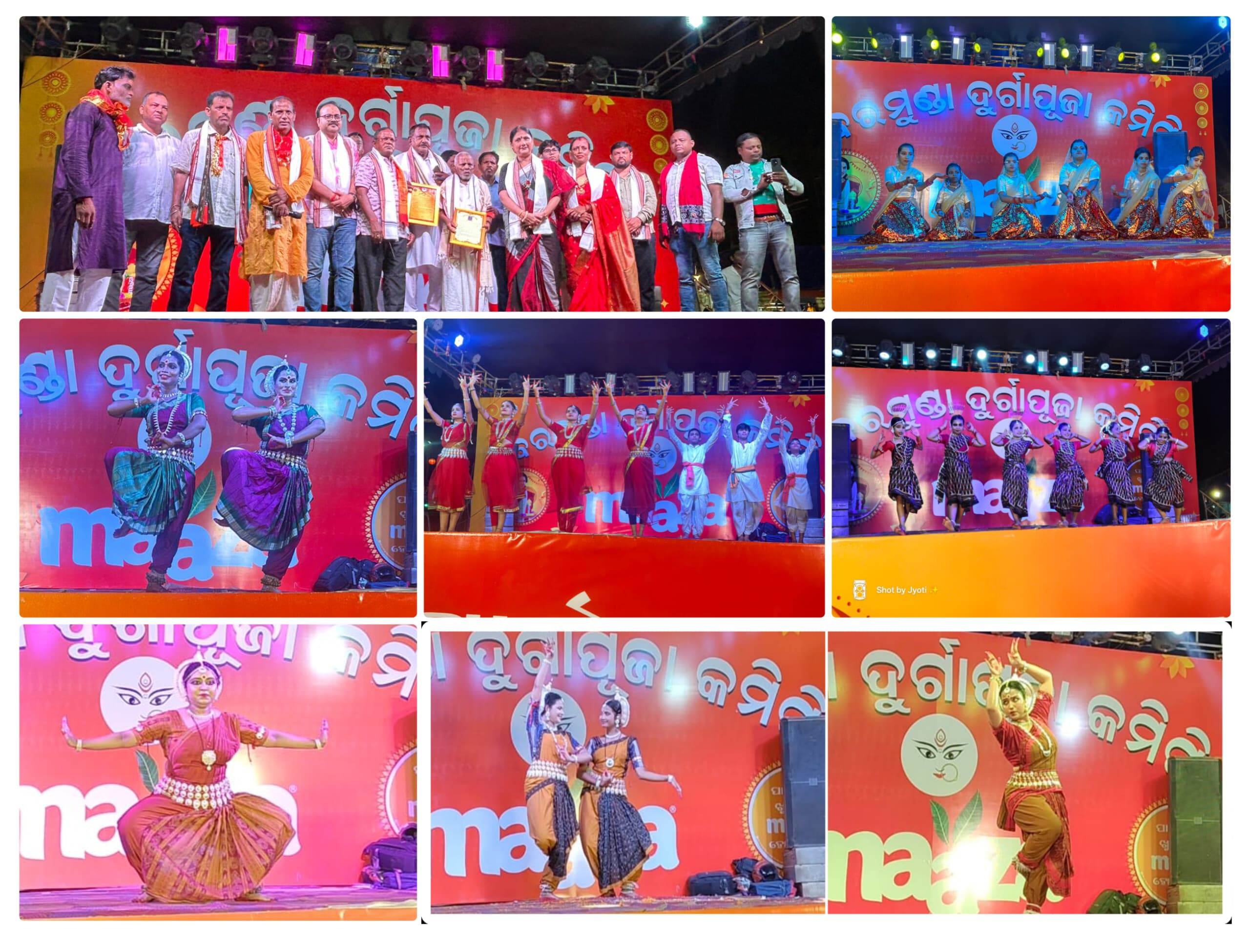 Durga Puja is being organized in Baramunda, Bhubaneswar like every year and the Baramunda Puja Mandap is being celebrated with various cultural programs. Artists are participating in the cultural programs and displaying their art. Similarly, in the cultural program organized yesterday evening, under the direction of Guru Smt. Puspita Mishra and the Principal of the institution, Guru Mita Das, the dancers of the Kalingayana Touryatrikam Dance Institute students performed “Ganesh Vandana, Raastha, Nava Durga, Radha Rani, Juge Juge Jagannath and Sambalpuri” and mesmerized the audience.