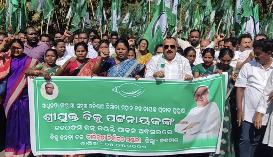 କନ୍ଧମାଳ ଜିଲ୍ଲା ବାଲିଗୁଡା ନିର୍ବାଚନ ମଣ୍ଡଳୀ ଅନ୍ତର୍ଗତ ମହାସିଙ୍ଗି ଠାରେ ମହାନ ଜନନାୟକ ଓ ପ୍ରବାଦ ପୁରୁଷ ବିଜୁ ପଟ୍ଟନାୟକଙ୍କ ୧୧୦ତମ ଜନ୍ମ ଜୟନ୍ତୀ ଉତ୍ସବ ମହାଆଡମ୍ବର ସହ ପାଳିତ ହୋଇଯାଇଛି।ଏହି ଅବସରରେ ଜିଲ୍ଲା ବିଜେଡି ଉପସଭାପତି ଟୁନା ଦାସଙ୍କ ନେତୃତ୍ୱରେ ଆୟୋଜିତ ସଭାରେ ପ୍ରଥମେ ବିଜୁ ପଟ୍ଟନାୟକଙ୍କ ଫୋଟୋଚିତ୍ରରେ ଦୀପ ଓ ଧୂପ ପ୍ରଜ୍ଜ୍ୱଳନ କରାଯାଇ ପୁଷ୍ପମାଲ୍ୟାର୍ପଣ କରାଯାଇଥିଲା। ପରେ ବିଜେଡି କର୍ମୀମାନେ ବିଜେଡି ସଂଗଠନକୁ ଅଧିକ ସୁଦୃଢ଼ କରିବା ସହ ବିଜେଡି ସୁପ୍ରିମୋ ନବୀନ ପଟ୍ଟନାୟକଙ୍କ ହାତକୁ ଆହୁରି ଶକ୍ତିଶାଳୀ କରିବା ପାଇଁ ଶପଥ ପାଠ କରିଥିଲେ।ସଭାରେ ଜିଲ୍ଲା ବିଜେଡି ଉପସଭାପତି ଟୁନା ଦାସ କହିଥିଲେ ଯେ ବିଜେପି ସରକାର ଗତ କୋଡ଼ିଏ ମାସ ମଧ୍ୟରେ ଜନତାଙ୍କୁ ଦିଆଯାଇଥିବା କୌଣସି ପ୍ରତିଶୃତି ପୂରଣ କରିନାହିଁ। ବରଂ ସରକାରୀ ଶାସନକାଳରେ ନାରୀ ନିର୍ଯାତନା ବୃଦ୍ଧି ପାଇବା ସହ ଆଇନ ଶୃଙ୍ଖଳା