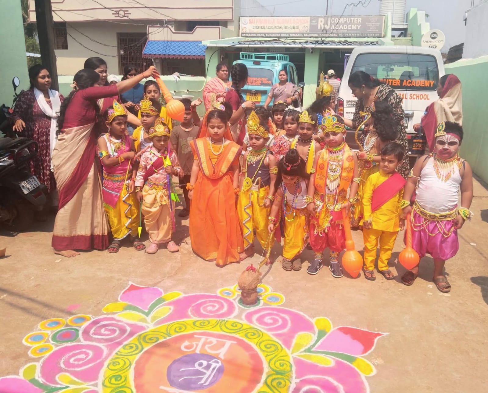ରାମ, ଲକ୍ଷ୍ମଣ, ଭରତ, ଶତ୍ରୁଘ୍ନ, ସୀତା ଓ ହନୁମାନଙ୍କ ବେଶରେ ସୁସଜ୍ଜିତ ହୋଇ ଏକ ଆକର୍ଷଣୀୟ ଶୋଭାଯାତ୍ରାରେ ସହର ପରିକ୍ରମା କରିଥିଲେ।ଶୋଭାଯାତ୍ରା ସମୟରେ ବିଭିନ୍ନ ସ୍ଥାନରେ ଘରେ ଘରେ ମହିଳାମାନେ ଝୋଟି ଚିତା ପକାଇ କଳସ ସ୍ଥାପନ କରି ପ୍ରଭୁ ରାମଙ୍କ ପାଦ ପ୍ରକ୍ଷାଳନ କରି ସ୍ୱାଗତ ଜଣାଇଥିଲେ। ଏହି ଆୟୋଜନର ମୁଖ୍ୟ ଉଦ୍ଦେଶ୍ୟ ଶିଶୁମାନଙ୍କ ମନରେ ଭାରତୀୟ ସଂସ୍କୃତି ପ୍ରତି ଆଗ୍ରହ ଜାଗ୍ରତ କରିବା ସହିତ ପ୍ରଭୁ ଶ୍ରୀରାମଙ୍କ ଆଦର୍ଶକୁ ଜୀବନରେ ଅନୁସରଣ କରିବାକୁ ପ୍ରେରିତ କରିବା ବୋଲି ସାଇ